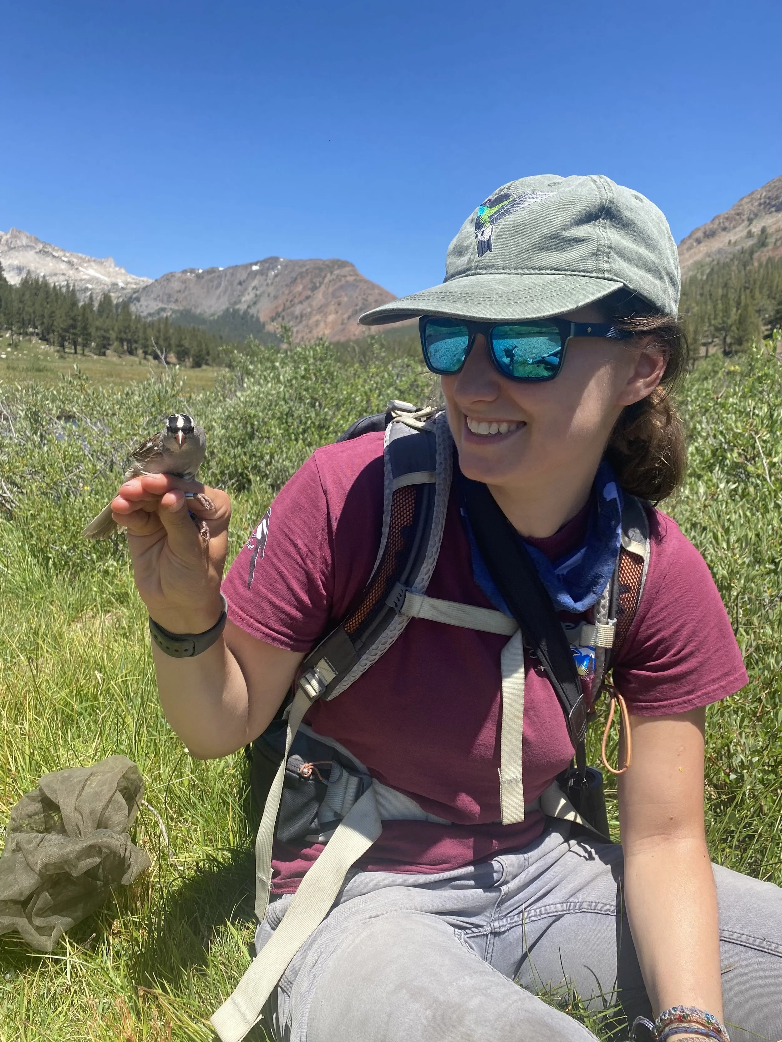 Olivia earned her Bachelor of Arts in Organismal Biology & Ecology from Colorado College in 2020. She is interested in avian feather molt and endocrine mechanisms, particularly how they relate to life histories. Currently, she is investigating how songbirds, specifically White-crowned Sparrows, adjust their annual cycles to compensate for unpredictable climate extremes. Looking ahead, Olivia hopes to continue conducting avian field research alongside undergraduates and share knowledge through teaching. In her free time, she enjoys birdwatching, hiking, solving crossword puzzles, playing Wingspan, and cooking!
