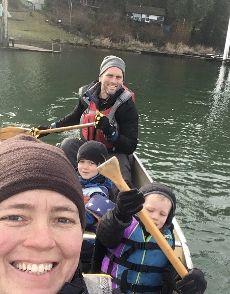 Pictured with husband Dr. Taylor Chapple, and sons Cash and Huck